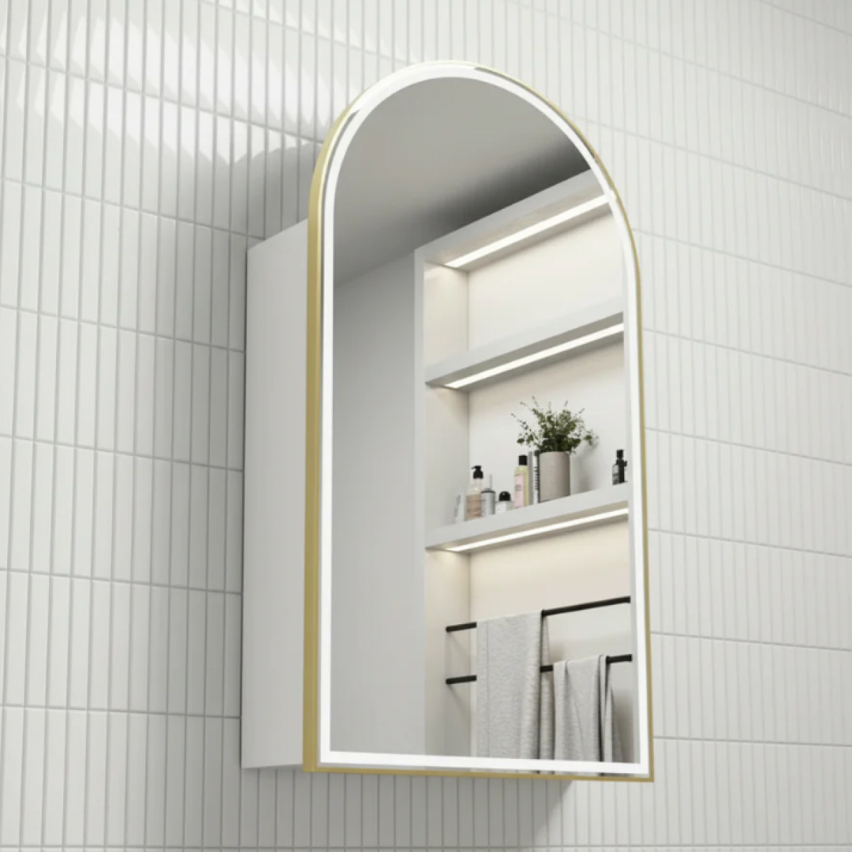 Bathroom Mirror Frameless Arch LED Shaving Cabinet Matte White 90cm x 60cm