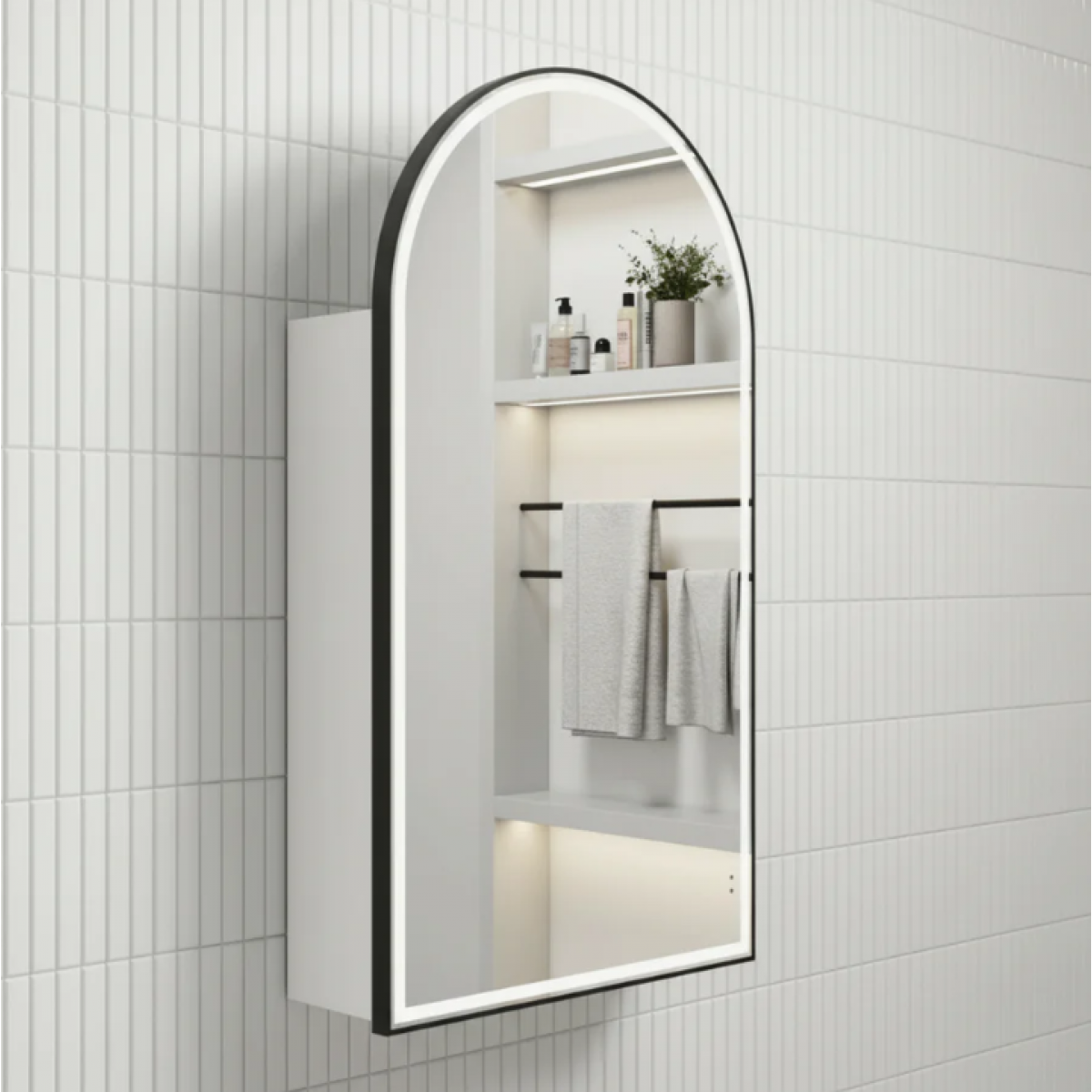 Bathroom Mirror Frameless Arch LED Shaving Cabinet Matte White 90cm x 60cm