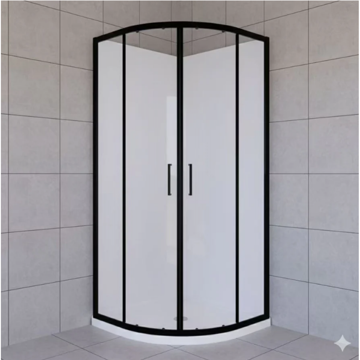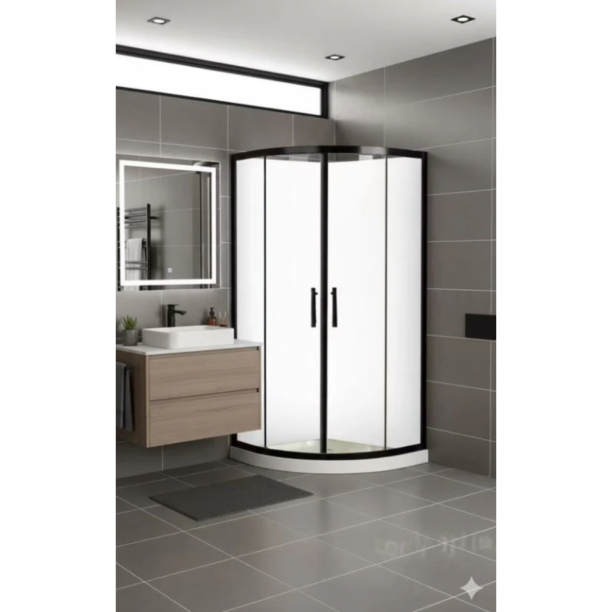 Shower Glass - ZENITH Series ROUND FRONT Twin Sliding Doors (900x900x1950mm) - Matt Black x 1 Weight:30.00KG. Dimension:1.93 x 0.7 x 0.15 (0.20265)CBM