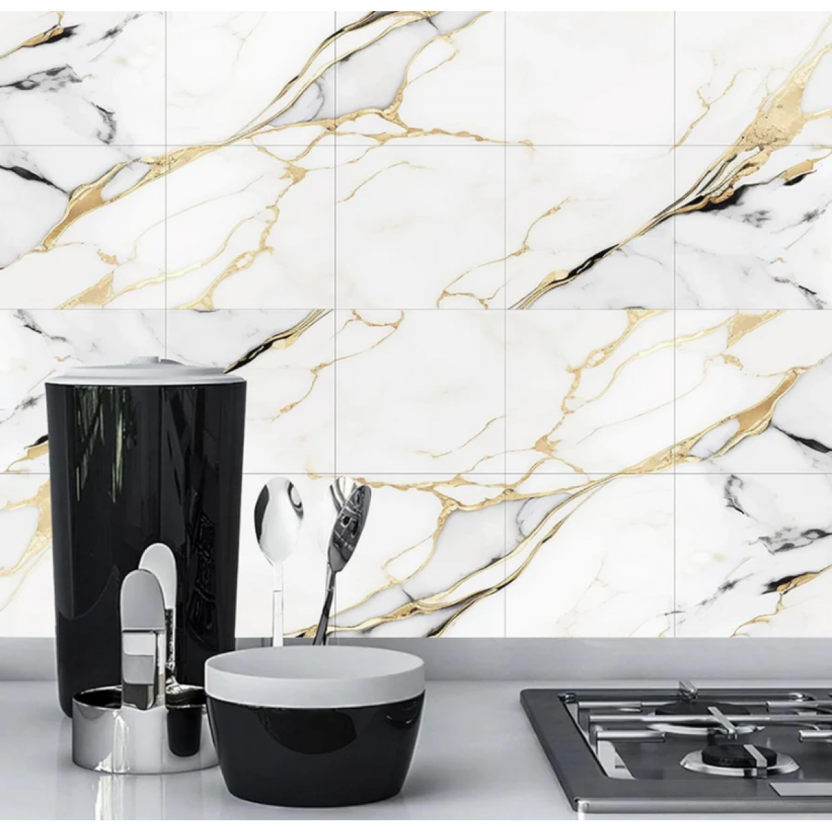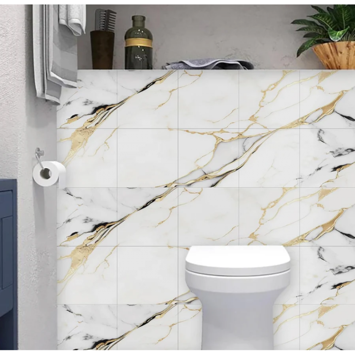 Enhance your interiors with this set of 10 modern marble-effect wall tiles, each measuring 30 x 30 cm. Crafted from durable PVC, these tiles offer a lightweight yet resilient solution that mimics the elegance of real marble without the maintenance. Ideal for stylish, water-resistant wall cladding in kitchens, bathrooms, or living spaces, they provide an easy-to-install option that combines aesthetic appeal with practical durability.