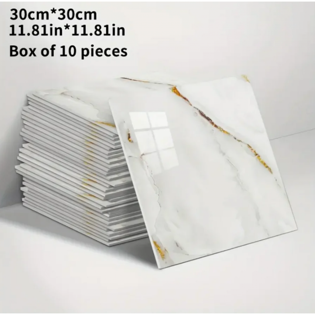 Enhance your interiors with this set of 10 modern marble-effect wall tiles, each measuring 30 x 30 cm. Crafted from durable PVC, these tiles offer a lightweight yet resilient solution that mimics the elegance of real marble without the maintenance. Ideal for stylish, water-resistant wall cladding in kitchens, bathrooms, or living spaces, they provide an easy-to-install option that combines aesthetic appeal with practical durability.