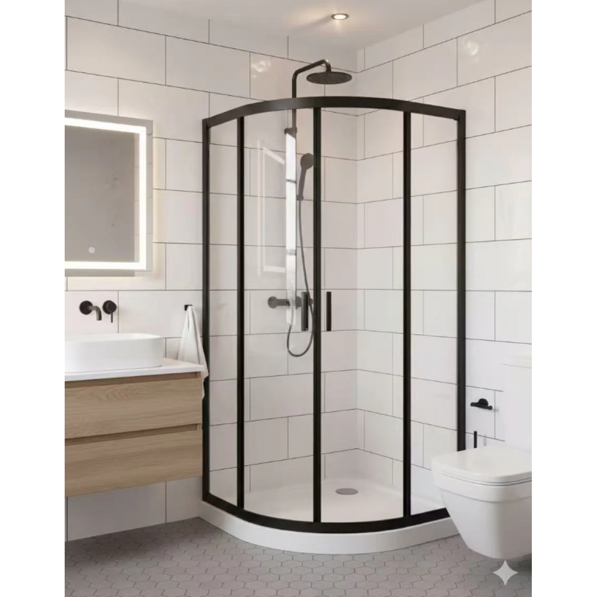 Transform your bathroom into a contemporary sanctuary with the ZENITH Round Front Shower Glass featuring twin sliding doors and sleek black frame. This premium enclosure combines sophisticated design with practical functionality, offering smooth gliding access and a frameless aesthetic that maximises visual space. The curved front profile creates an elegant focal point while the durable black frame provides striking contrast and structural integrity. Ideal for modern bathrooms seeking both style and performance, this shower solution delivers professional-grade quality with effortless daily usability.