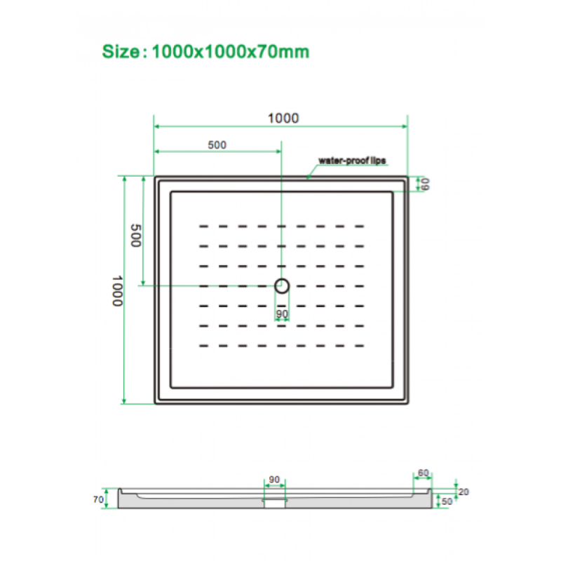 Shower Tray - Square Series 1000X1000mm Center x 1